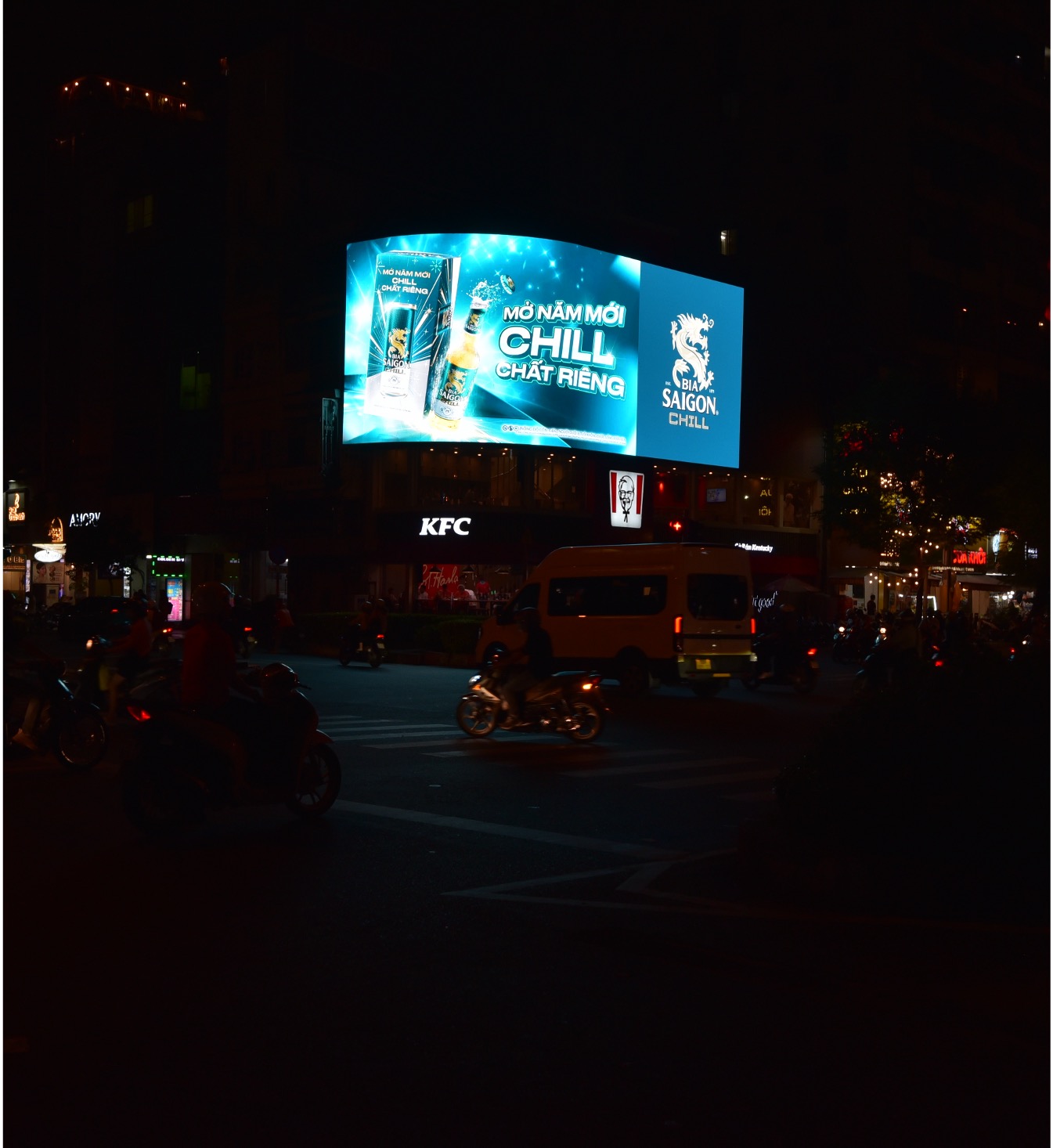 Màn hình LED KFC 78 Lê Lai – vị trí vàng trung tâm Sài Gòn, lưu lượng 2,5 triệu lượt/2 tuần, giải pháp quảng cáo thương hiệu đẳng cấp.